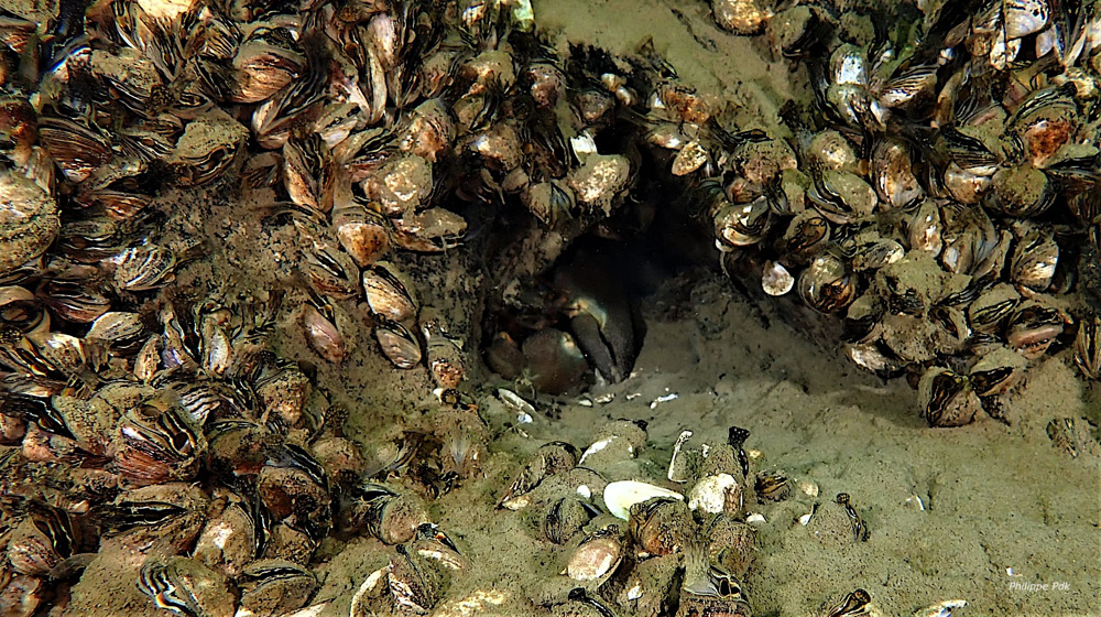 Duikzone A van Barrage de l’Eau d’Heure. Je duikt in een stuwmeer met mooie onderwaterbiotopen maar relatief weinig flora en veel fauna. Er zijn gebieden met zand, stenen, slakken en zoetwaterkreefjes. Je ziet oude boomstronken vol slakken en stenen bezaaid met zebramosseltjes. Alleen duiken tijdens openingsuren. Reserveren verplicht!