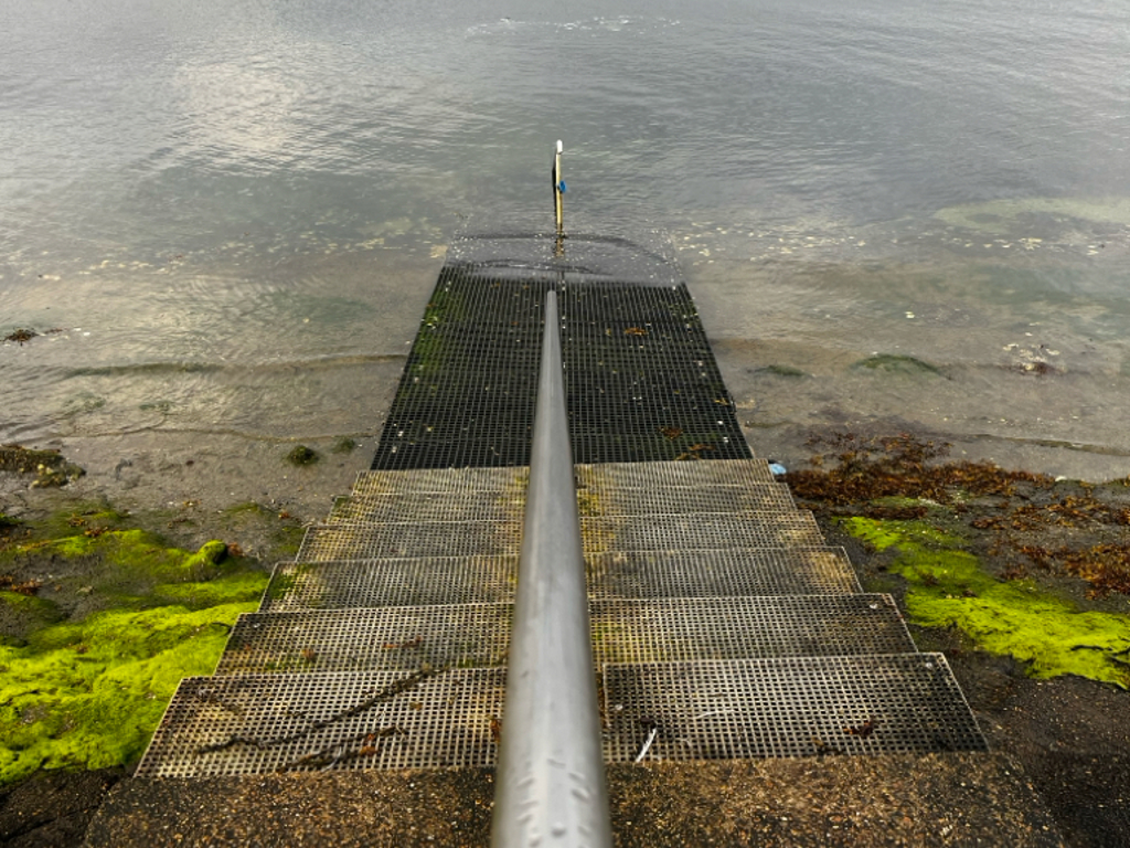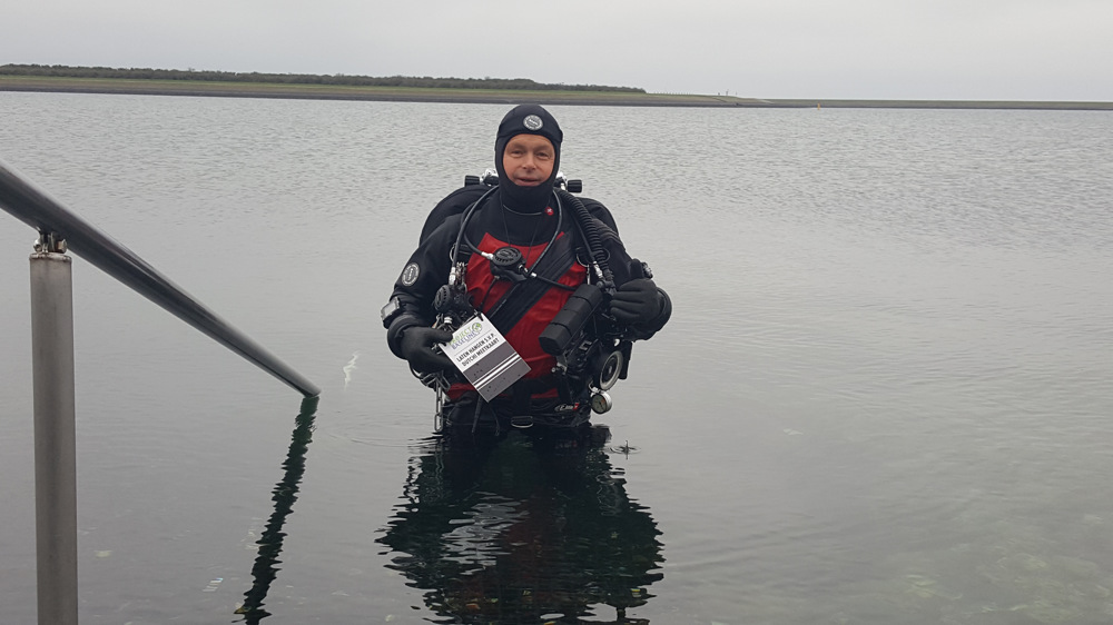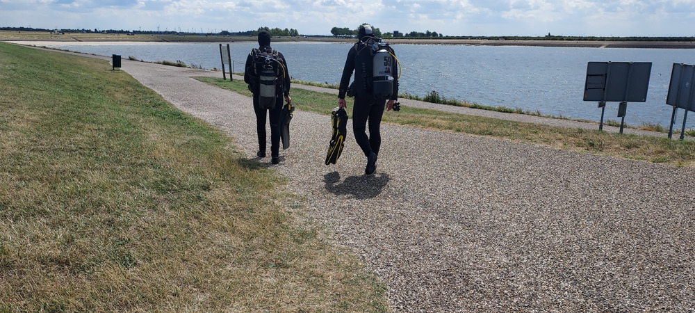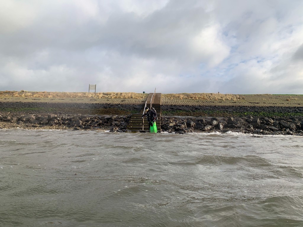 Je gaat bij de Bergse Diepsluis Oesterdam te water via een betonnen trap met leuning. Op een bord naast de dijktrap vind je informatie over Project Baseline, dat hier meetinformatie verzamelt. Doe ook mee. Geef jouw meting door aan de projectleider. Het meetpunt bevindt zich aan het platform op 10 meter diepte. Zie duikkaartje.