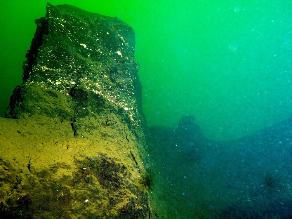 Je gaat bij De Kuilen, Mill te water vanaf het strand. Zwem 50 meter uit om op diepte te komen en houd dan een koers van 90 graden aan. De plantenrijke bodem gaat over in een sedimentlaag, gevolgd door een imposant veengebied vol canyons, blokken en kloven. Zoek in de grillige wanden naar fossiele overblijfselen uit de oertijd. De prehistorische laag is herkenbaar aan de overvloed van driehoeksmosselen, kleine schelpjes en kokerwormpjes.