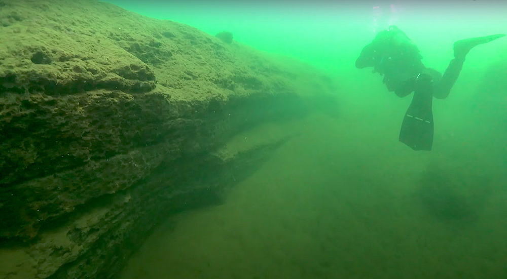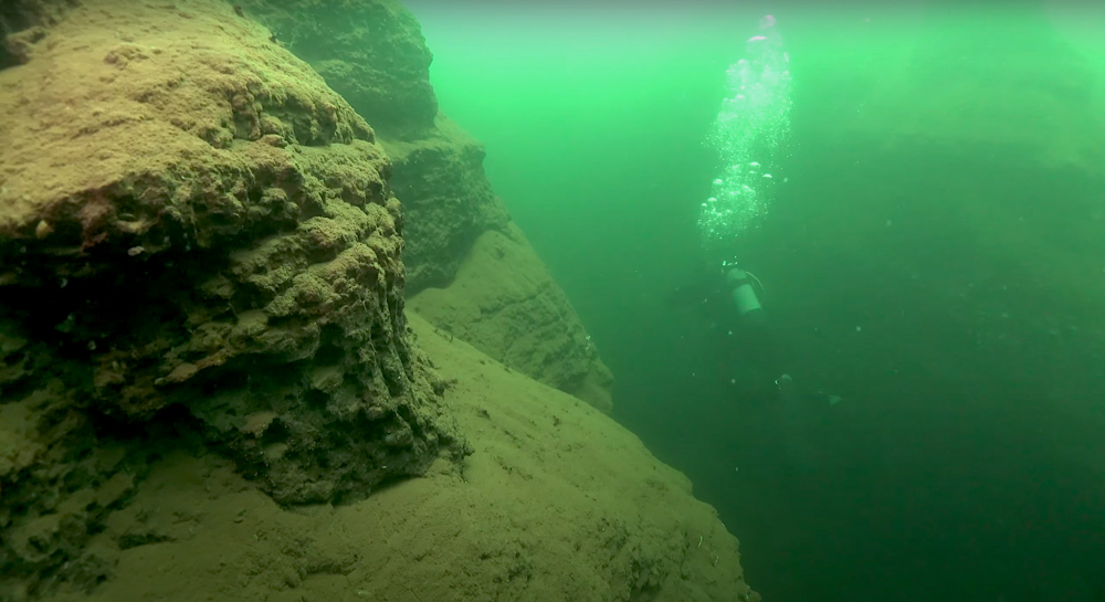 Je gaat bij De Kuilen, Mill te water vanaf het strand. Zwem 50 meter uit om op diepte te komen en houd dan een koers van 90 graden aan. De plantenrijke bodem gaat over in een sedimentlaag, gevolgd door een imposant veengebied vol canyons, blokken en kloven. Zoek in de grillige wanden naar fossiele overblijfselen uit de oertijd. De prehistorische laag is herkenbaar aan de overvloed van driehoeksmosselen, kleine schelpjes en kokerwormpjes.