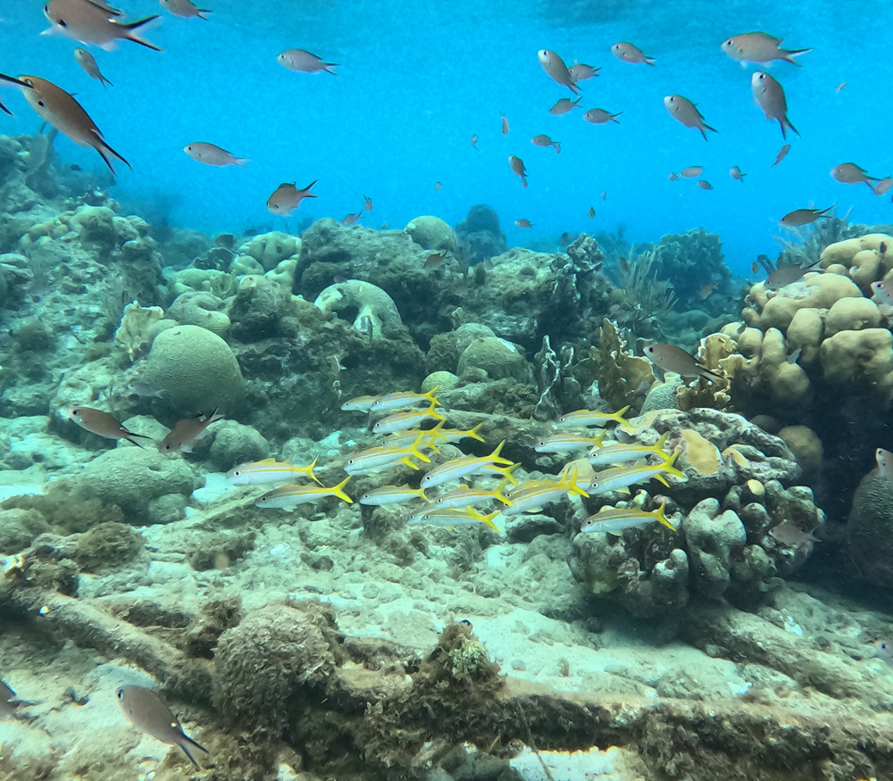 Blue Bay Wall ligt net buiten Blauwbaai. Na 20 minuten zwemmem aan de oppervlakte kun je naast de muur afdalen. Of boek een bootduik. Onderwater kom je langs de wand een overvloed aan groot en klein zeeleven tegen.
