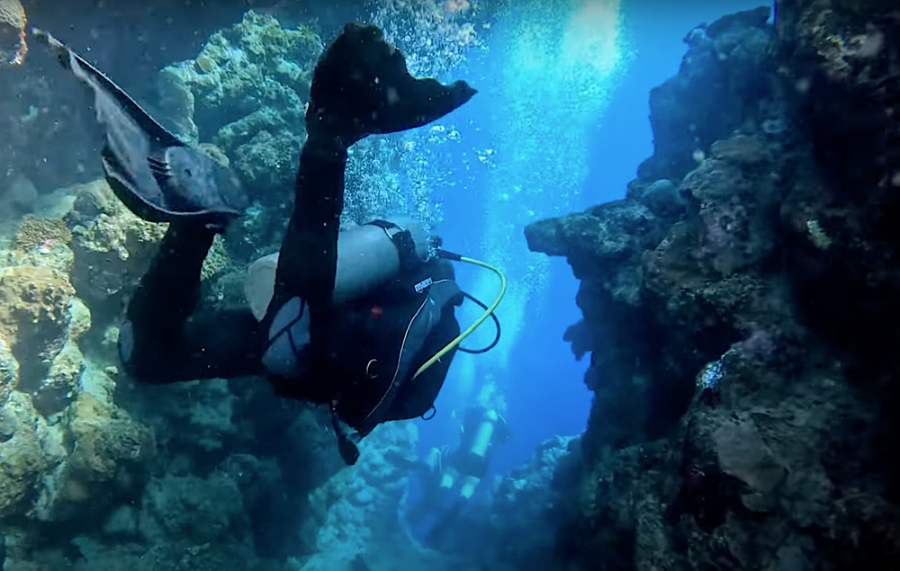Pas op! De doorgang naar open zee is alleen voor technische trimix-duikers haalbaar.