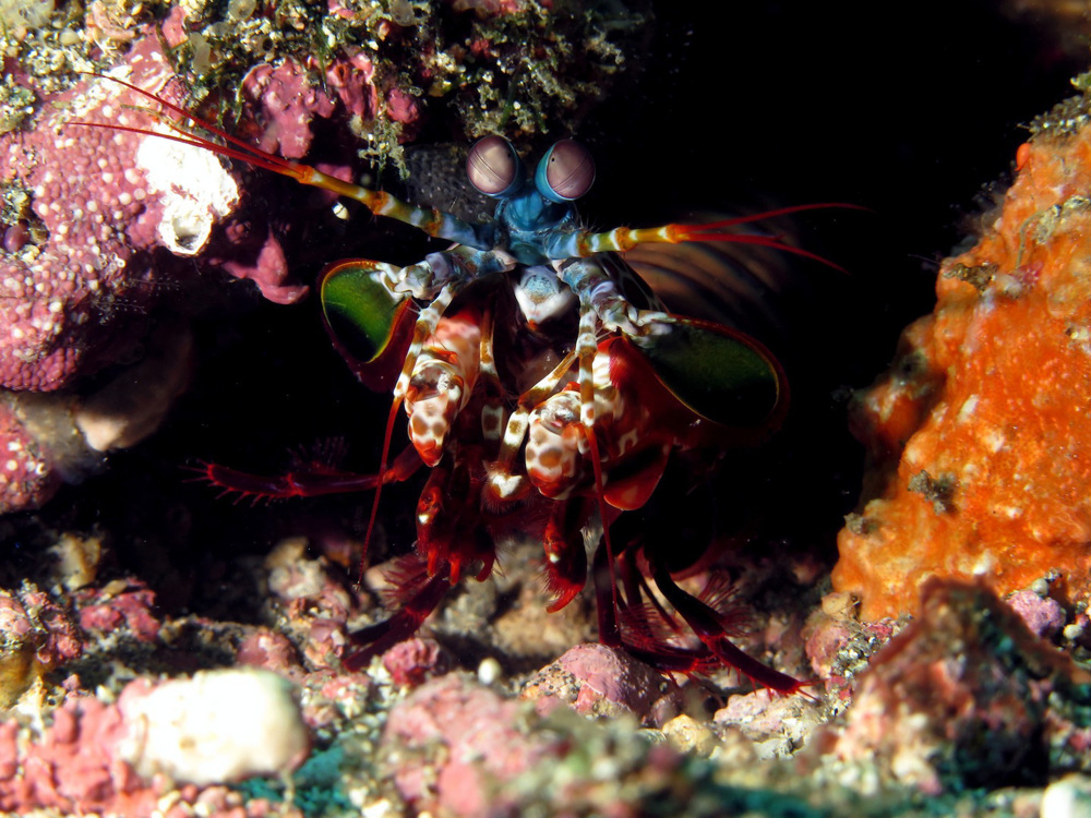 Mantis shrimp, murenes, kokerwormen, veel kwallen.