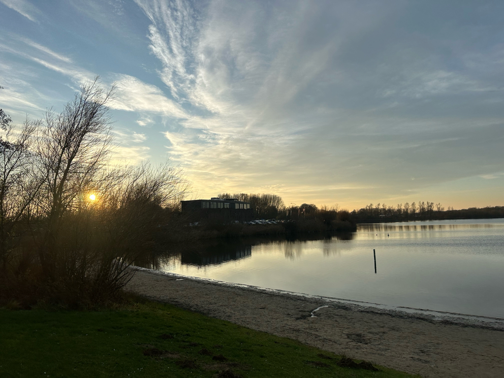Bronsbergenmeer Noord bereik je vanaf een grasoever. Ga onder ter hoogte van de ballenlijn en zet koers richting het duikgebied.