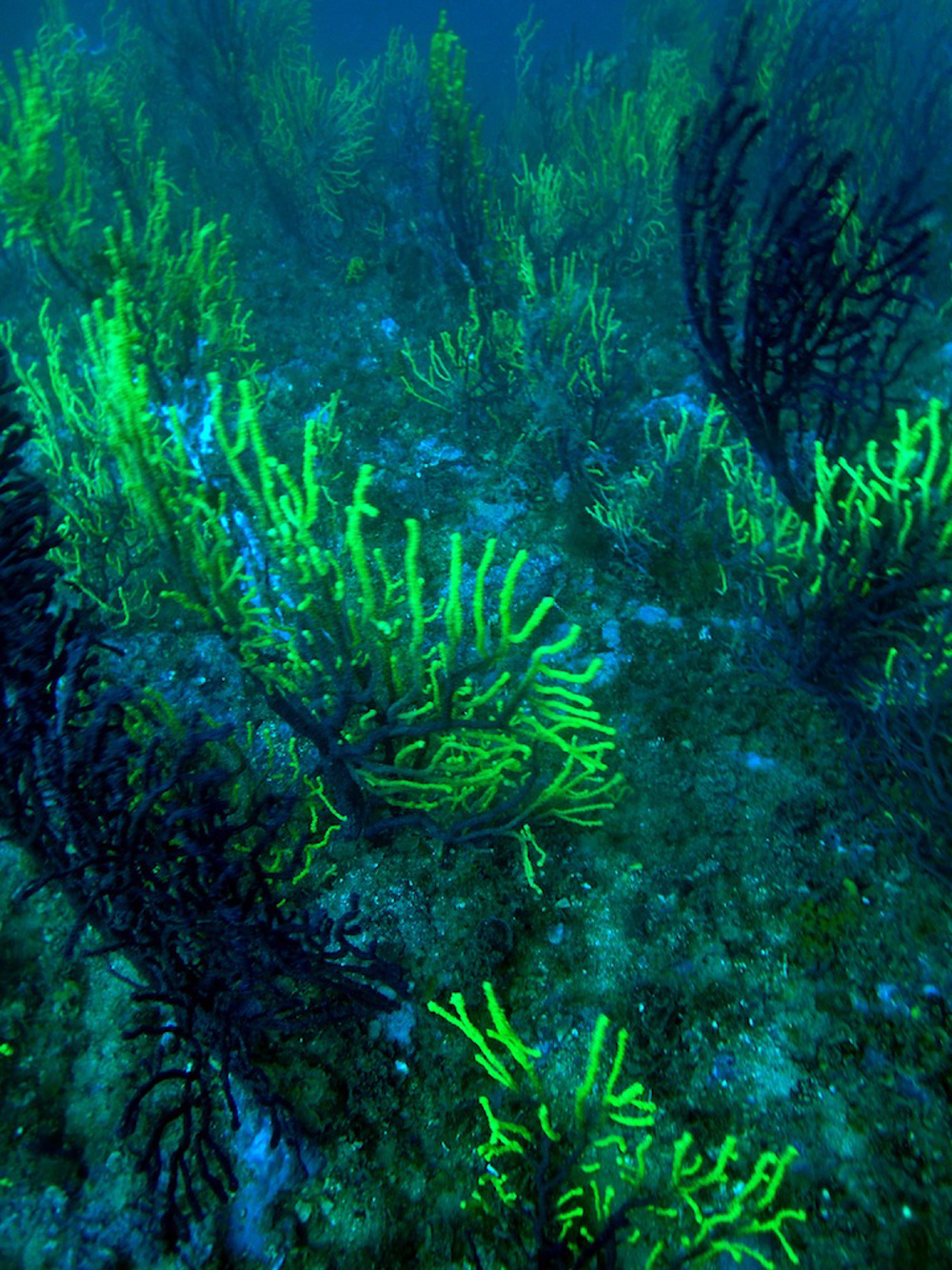 The depth at Carall Bernat range from 6 to 50 meters. At about 22 meters is a plateau that at 35 meters turns into a steep drop-off.