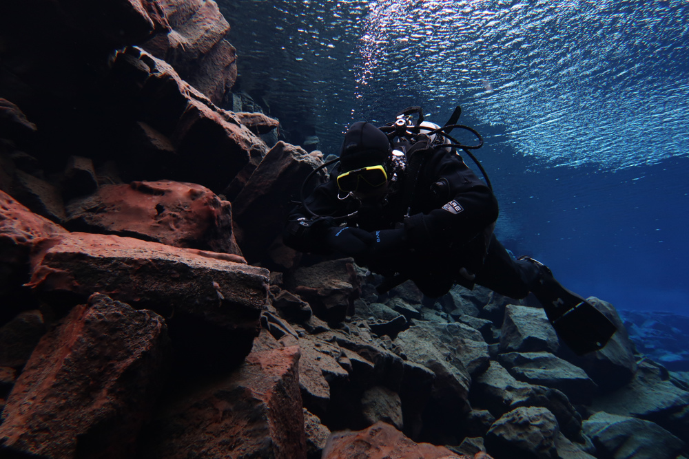 Davíðsgjá zou je het kleine broertje kunnen noemen van de wereldberoemde duikstek, de Silfra kloof. Davíðsgjá ligt op enige afstand van deze duikplaats en is zeer zeker de moeite waard. Net zoals in de Silfra kloof duik je tussen tektonische aardplaten in glashelder water, langs adembenemende structuren.
