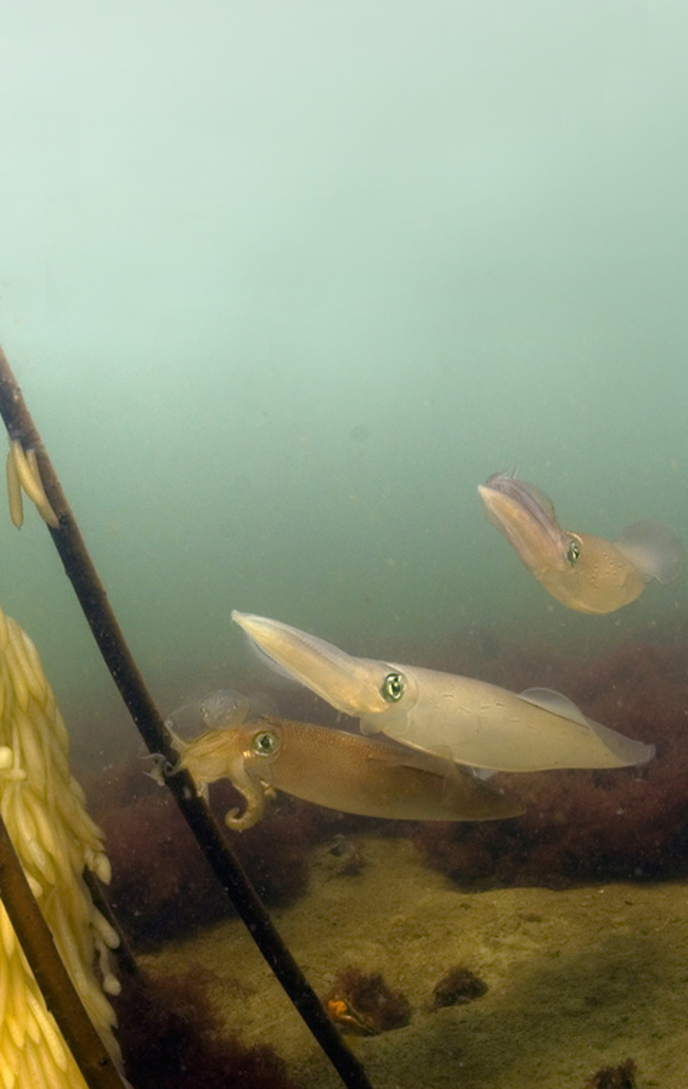 - Kreeft, noordzeekrab, pijlinktvis, platvis, sepia, sepiola, slibanemoon, snotolf, vijfdradige meun, wulk, zeebaars, diklipharder