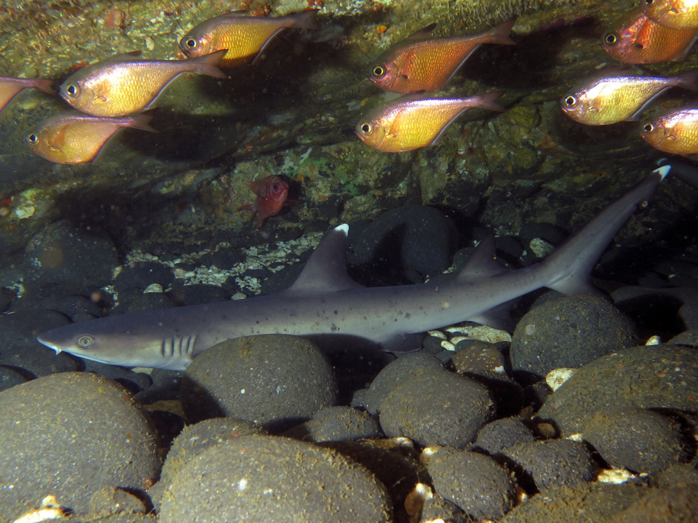 De haaiengrot op 13 meter diepte moet je echt opzoeken. Deze rustplaats voor witpunt rifhaaien biedt je de gelegenheid om deze prachtige vissen van zeer dichtbij te bekijken in hun natuurlijke omgeving. Neem je fototoestel mee!