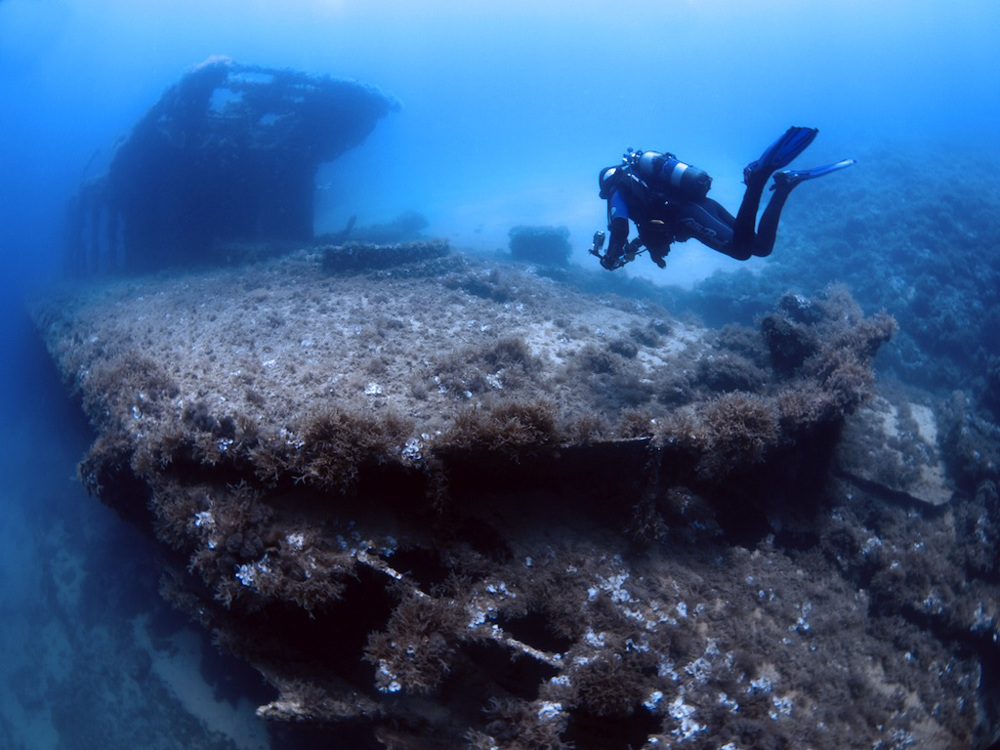 - Vrij toegang, je bereikt het wrak vanaf de kant door vijf minuten onderwater te zwemmen, instap met leuning, deining kan exit bemoeilijken