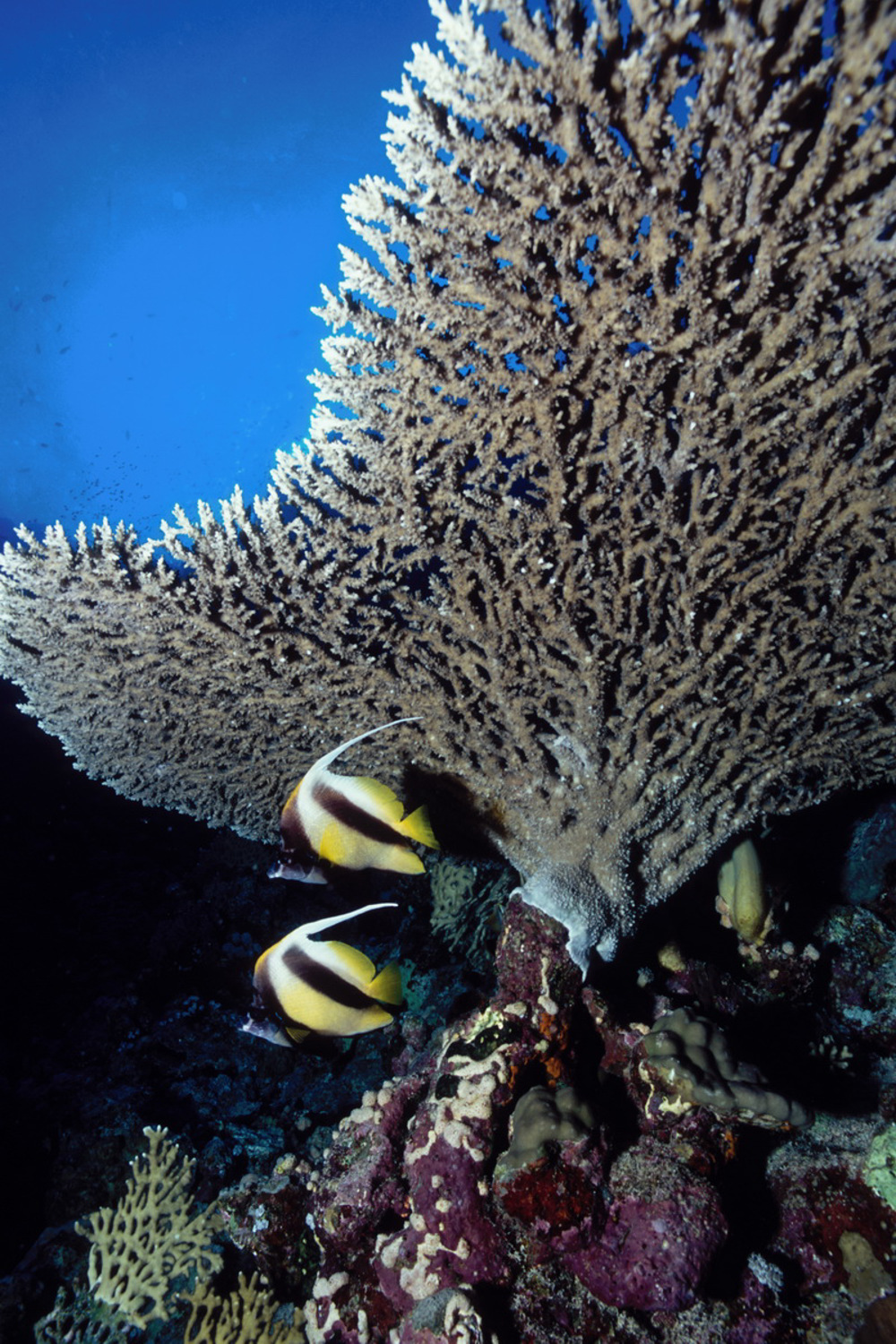 - Schildpad, witpuntrifhaai, tonijn, barracuda, amberjack of geelstaart, koraalduivel, zeeduivel, diklip, koraalvlinder, koraalvlinder, adelaarsrog