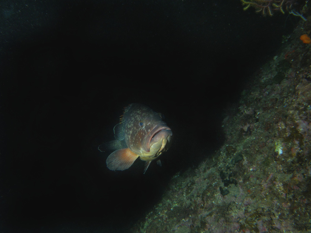 Overal bij Les Ferrenelles zie je rotsblokken, begroeid met gorgonia’s en her en der zwemmen enorme tandbaarzen en groupers. Sommige groupers vergezellen je tijdens je duik en poseren geduldig voor je camera.