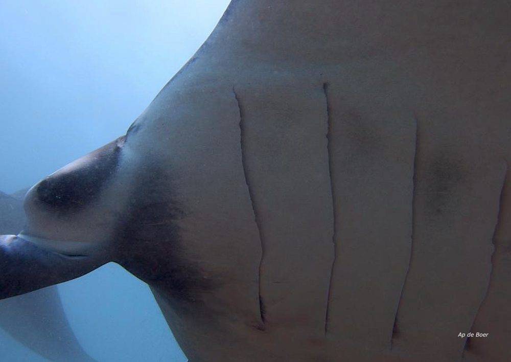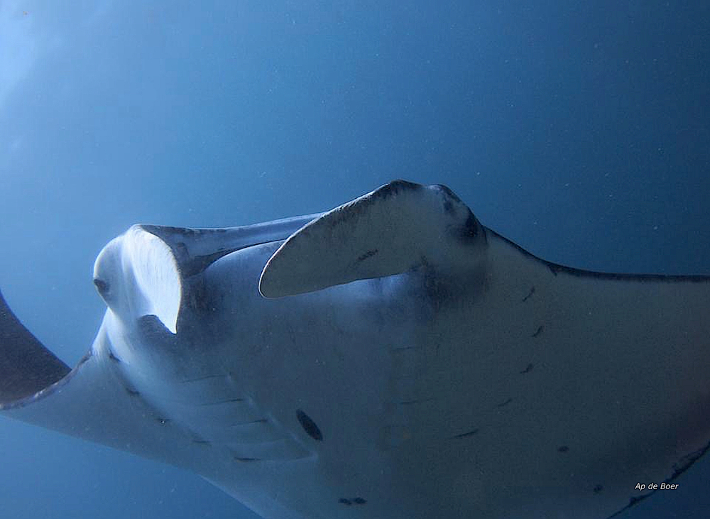 Het water kan bij Manta Alley soms een beetje koud zijn. Behoorlijk sterke stromingen.