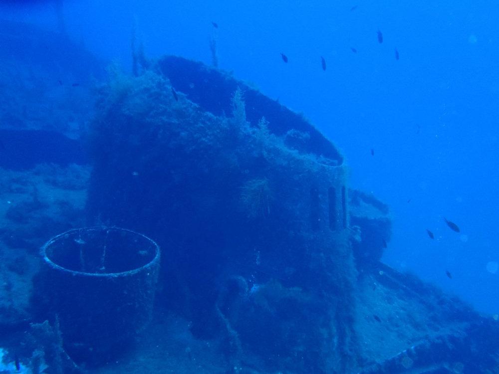 Markeringsboei is alleen in het hoogseizoen aanwezig. Doordat het schip speciaal voor de duiksport is afgezonken kun je veilig op diverse plaatsen binnen gaan.