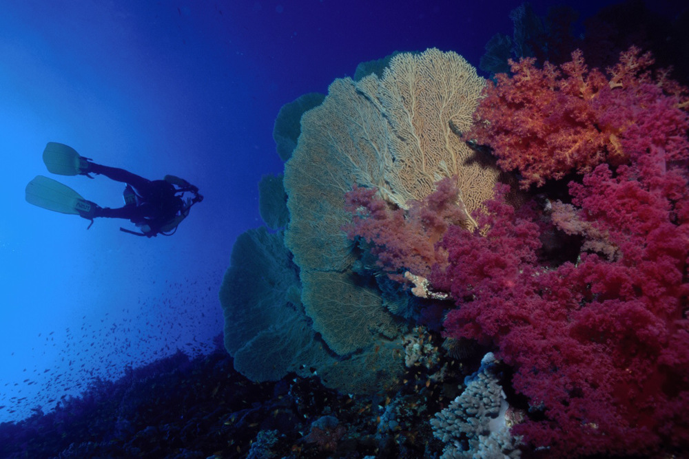 Het kleine Rocky eiland is weliswaar klein bovenwater, onderwater is het groot(s). Honderden meters van massieve muren trekken zich vanaf de zeebodem op, omgeven door overhangende koraaltuinen en grotten.