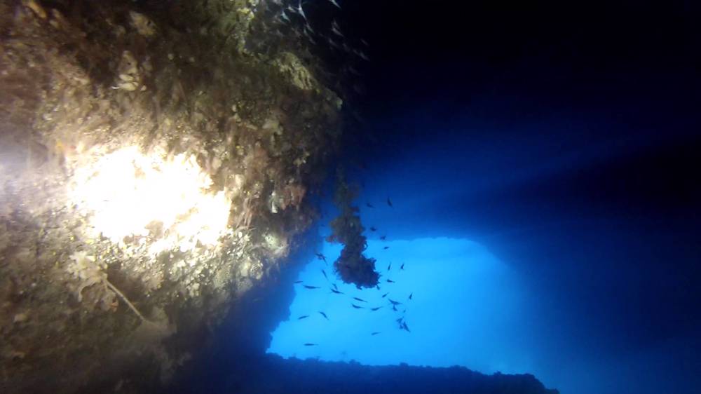 In de grot (cavern) passen maximaal 6 duikers en je kunt het lichtschijnsel van de ingang of de ingang zelf altijd zien. Je kunt deze duik ook als multilevel doen wanneer je Reqqa Point in je duik betrekt. Het is makkelijk een 45 minuten duik te doen zonder in deco te gaan waarbij je een telkens wisselende habitat ziet.
