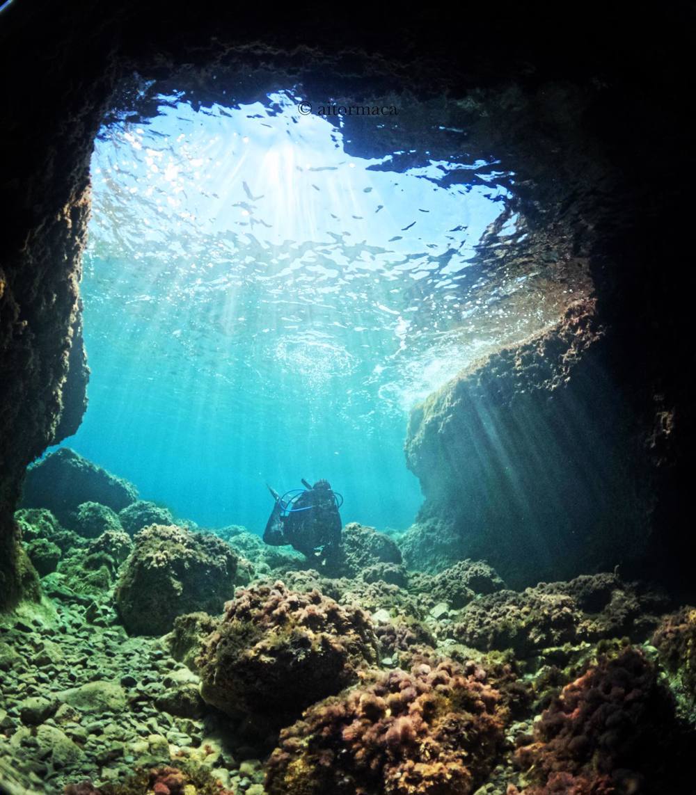Je bereikt Skylicht Cave in 15 minuten varen vanaf Cala bona.