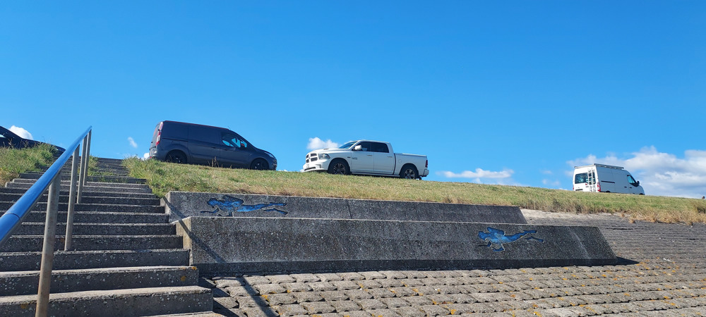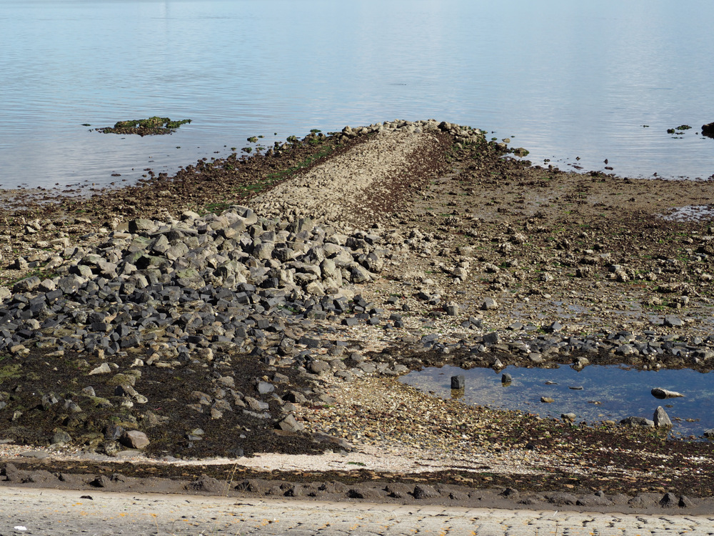 Je parkeert bij Stormezande in de berm langs de weg. De trap eindigt bij hoogwater in het water en bij laagwater bij een kiezelstrandje, dat uitloopt in een rij basaltblokken. Zwem uit tot voorbij de basaltblokken en zoek vervolgens de diepte op. Je bereikt op 10 meter diepte een zandbodem die op 14 meter overgaat in grote oestervelden. Stormezande wordt gemarkeerd met de afbeelding van een blauwe duiker op het betonnen plateau naast de trap.