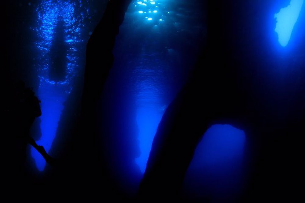 Grotten bieden vaak mooie tunnels waar je doorheen kunt zwemmen, grote spleten en scheuren waarin zich veel marien leven verstopt. De Tac Cawla grotten zijn niet anders.