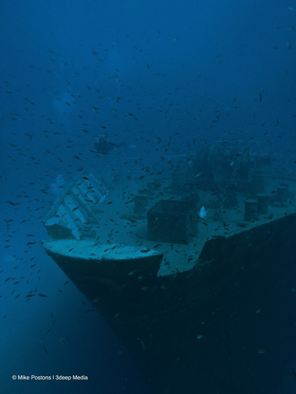 - 10 min. zwemmen naar het wrak of betaal een plaatselijke visser om je bij het wrak af te zetten, trap of ladder, commandosprong