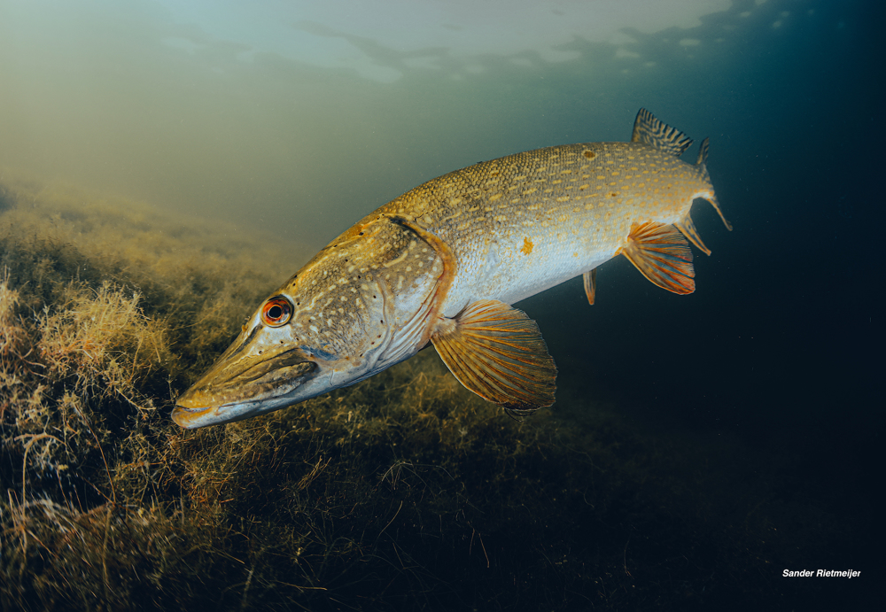 Als je in Twiske Baaiegat ver genoeg naar links uitzwemt (ondiep langs de oever) bemerk je dat de rietkraag op sommige plaatsen enkele meters overhangt. Schijn hieronder met je lamp. Je ziet de wortels van de oeverbegroeiing door de grond in het water steken.