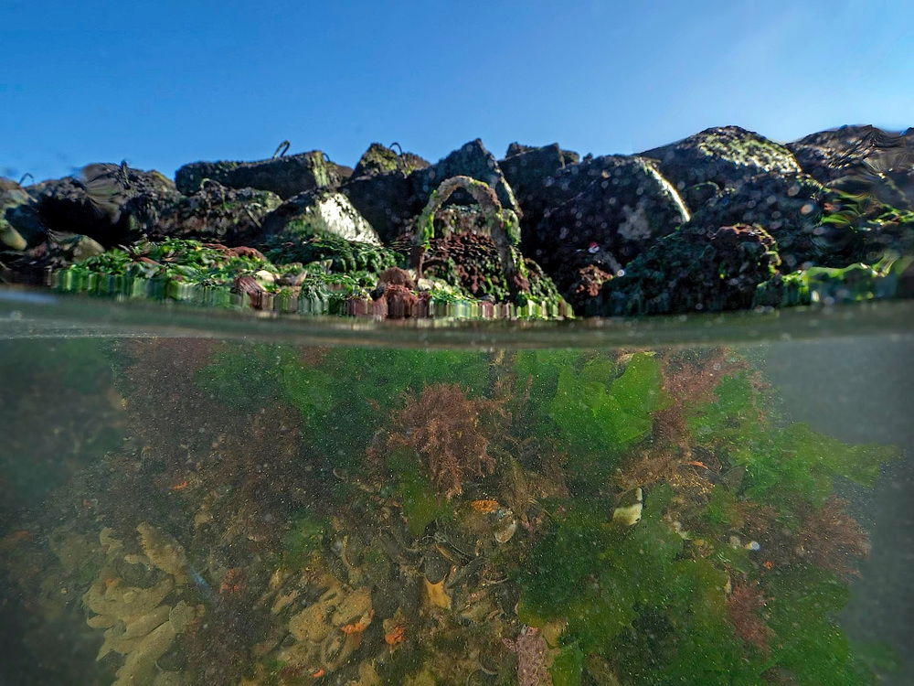 De Blokkendam ligt in de Noordzee ter hoogte van de Grevelingen. Parkeer aan de Brouwersdam en ga ten noorden van de krom lopende pier te water vanaf het strand. Waad het eerste stuk, zwem dan uit en duik op enkele meters afstand van de blokken tot het einde van de dam en weer terug.