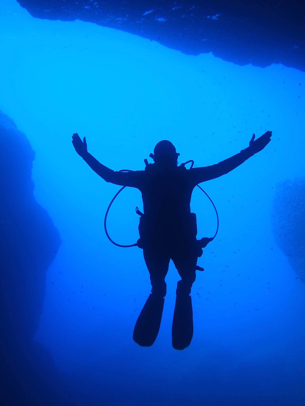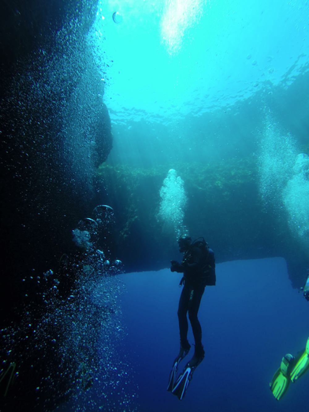 The Blue Hole is een van de mooiste duikspots van de Maltese eilanden. Alleen al de instapplaats, waar ooit de fameuze Azure Window stond, is uniek. De Azure Window is op 8 maart 2017 helaas ingestort. Je duikt in een door wind en water uitgesleten rotsformatie met steile wanden, die toegang biedt tot open zee. Opvallend zijn vooral de imposante boog, die op 8 meter diepte begint, de enorme 15 meter diepe grot op de bodem en de verticale tunnel ofwel the Chimney. The Chimney bereik je via het linker rif. Het ligt op 18 meter diepte en voert je uiteindelijk naar de Coral Gardens op 4 meter diepte, waar je eventueel het water kunt verlaten.