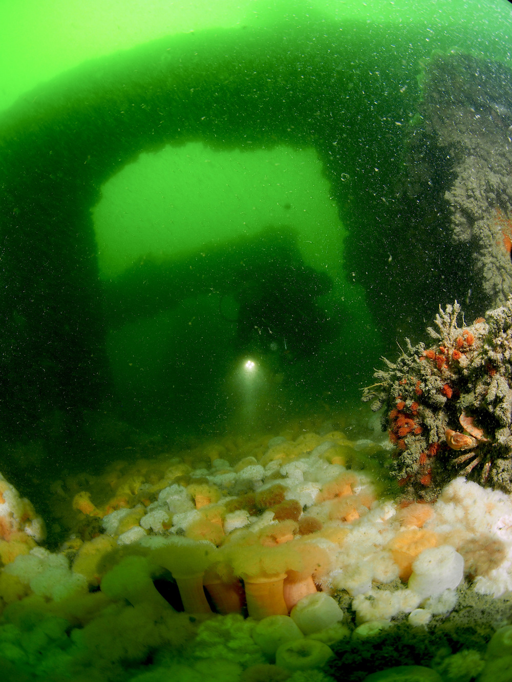 Delen van de Christiaan Huygens zijn ingestort. Wees voorzichtig. Sterke stroming tijdens springtij. Het is verboden om artefacten uit het wrak mee naar boven te nemen.