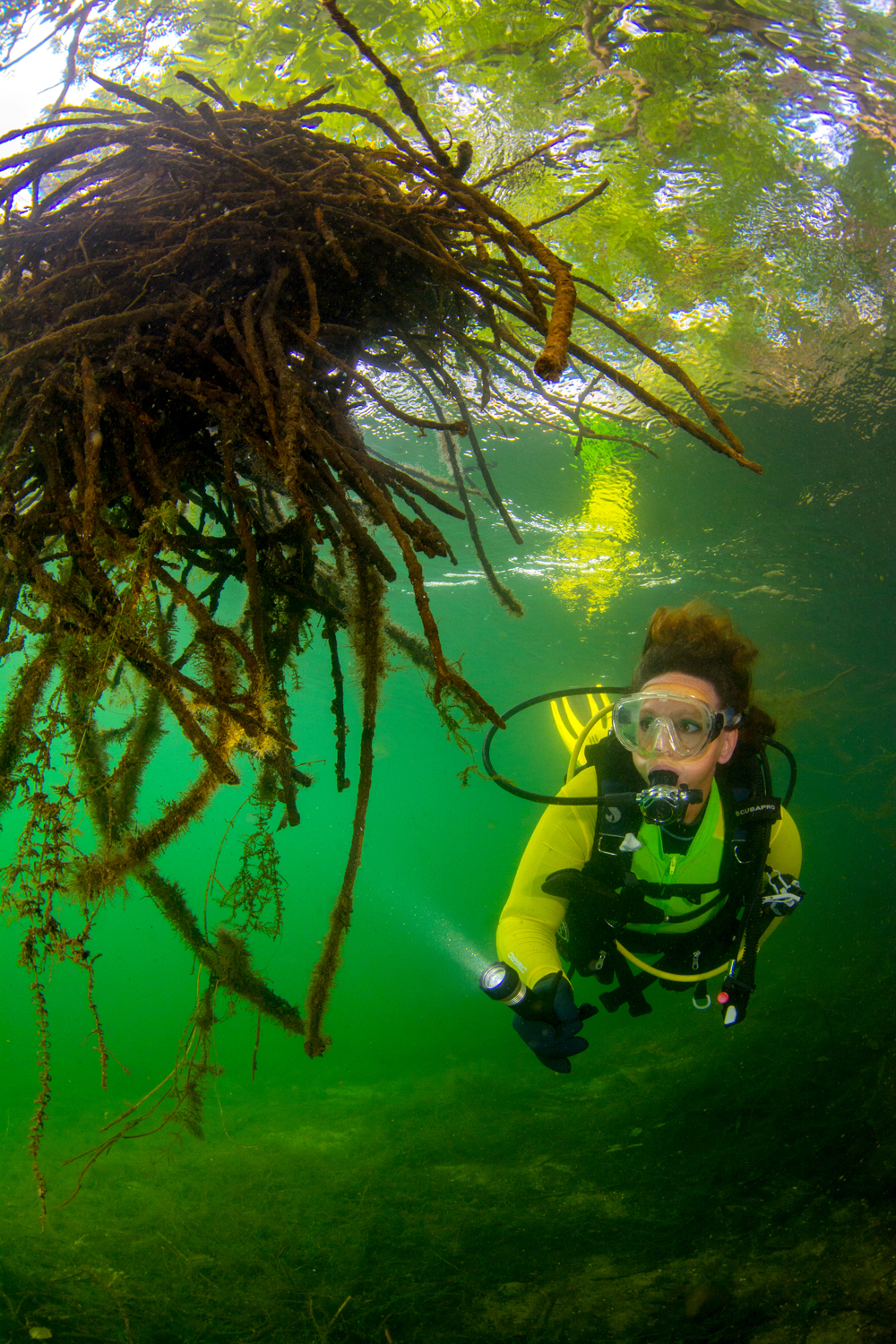 Op 5 mtr wat baarsjes. 5-14m wat kreeftjes. Zicht overal zeer goed.