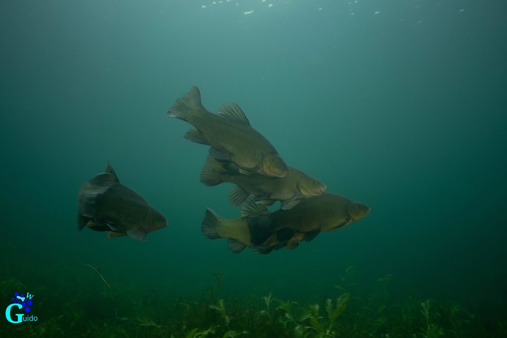 Rustige duik in de voormiddag. Links van de steiger 4grote karpers en 2 grote zeelt en 3 grote snoeken.