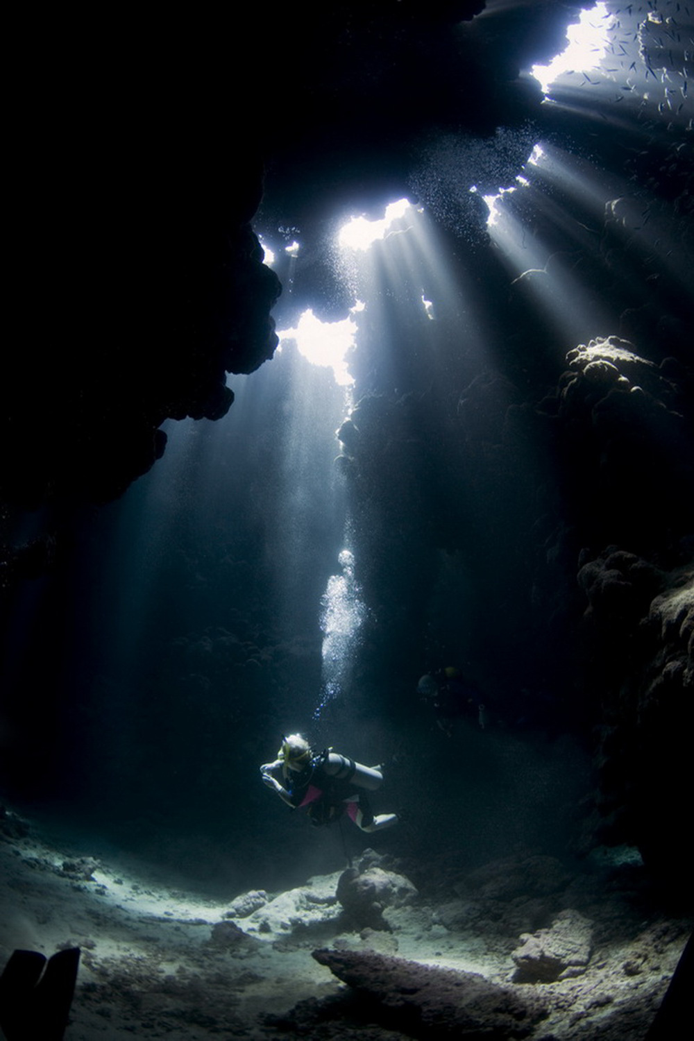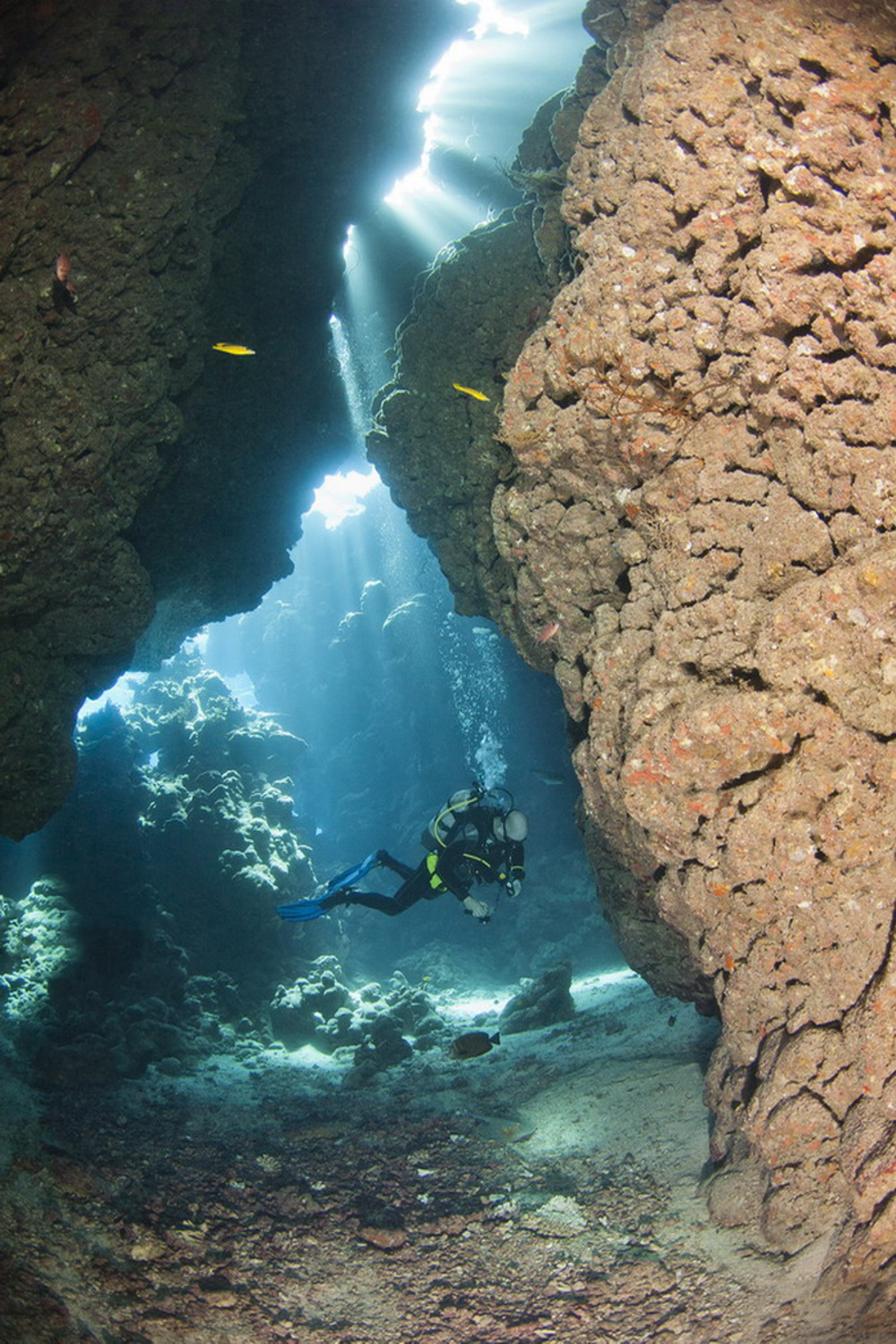 De grotten van Sha'ab Claudia zijn geschikt voor gevorderde duikers, mits zij vergezeld worden door een gids.