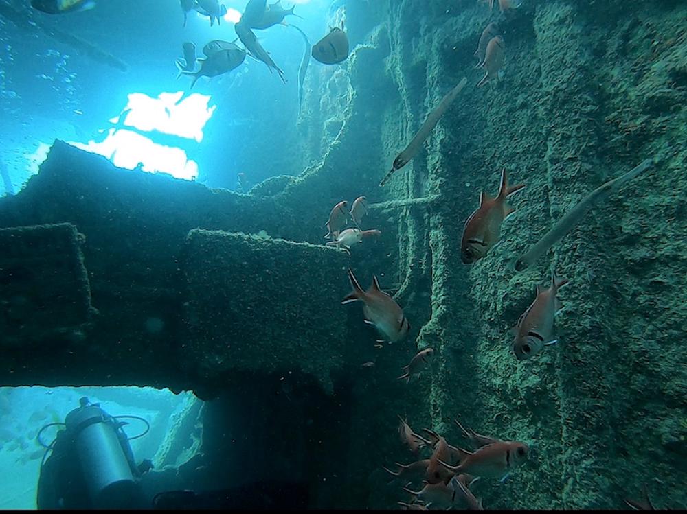 Pas bij St. Antão Wrak op voor scherpe delen die je uitrusting kunnen beschadigen. Ga het wrak alleen in als je over de juiste certificering beschikt.