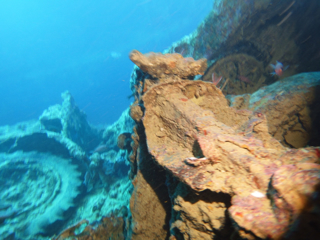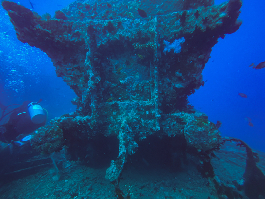 - Het wrak is per boot bereikbaar