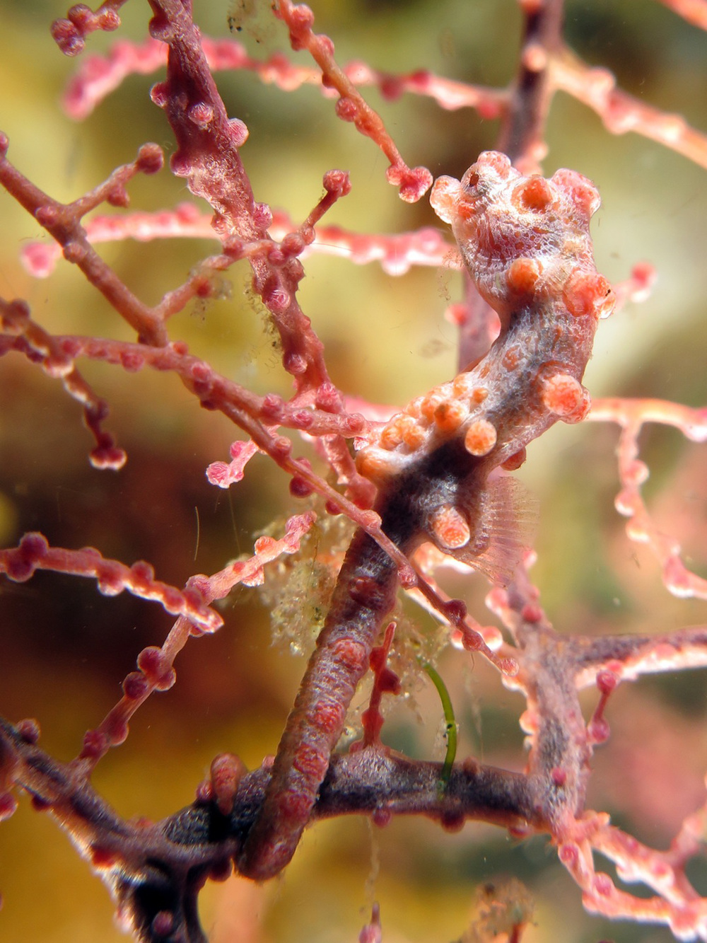 Het mooiste deel van Tulambem Drop Off bevindt zich in de wat diepere gedeelten. Op de richels van de wand kom je frogfish tegen en op de punt van de drop-off groeit een prachtige gorgonian. Hier spot je Bargibanti pygmeezeepaardjes. De zandhellingen zijn het domein van de naaktslakken. Kijk ook in het blauw om mogelijk een mola mola of een walvishaai te spotten.