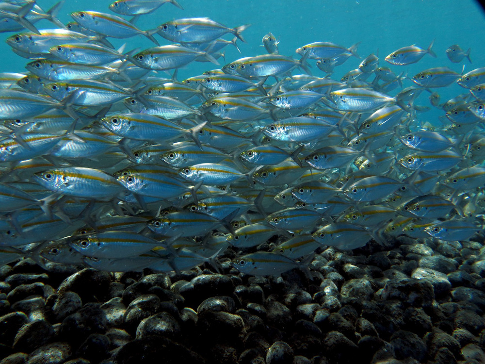 - Groene murene, garnaal, krab, grijze en zwartpuntrifhaai, maanvis, octopus