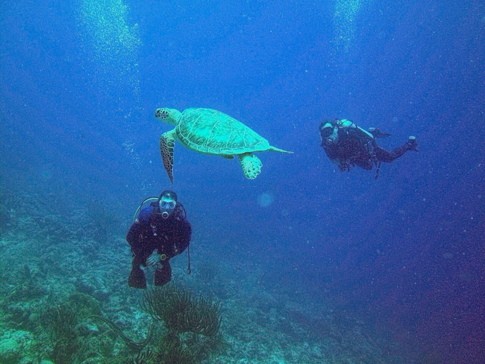 Duik in Turtle City met lokale gids en bij voorkeur per boot. Duikplaats blijft lang ondiep.