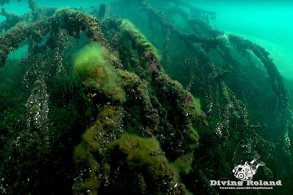 Grote snoek langs wrak. Tot 10 mtr goed, daaronder matig