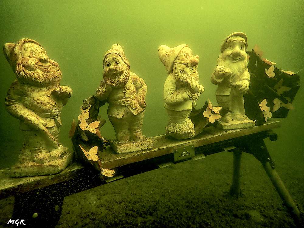 Het Hondenstrand is een van de mooiste duikplaatsen in de Zevenhuizerplas. Het is een stek waar je best even voor in de auto wil zitten. De weelderige plantengroei, het gigantische lijnenparcours vol met beelden, de kleiwanden en het fameuze Palingpad staan telkens weer garant voor een schitterende duik. Het Palingpad mag je niet missen. Het begint bij de eerste kleiwand die tegenkomt, precies waar de onderwaterlijn afbuigt richting het oosten (zie kaart). Volg de onderkant van wand, vlak boven de bodem, en verbaas je over de vele palingen die je op het traject tegenkomt. Sommige zijn zo dik als je bovenarm!