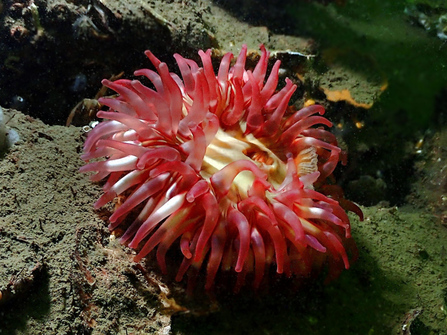 Tot 2m goed zicht. Tot 6m wat minder. Daaronder weer goed. 6 zeedahlia's waarvan 2 gesloten. Kreeften, steurgarnalen, bonte mantels.