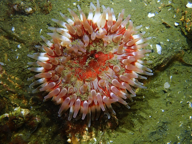 Nederland, Zeeland 3-08-25Ondanks de wind en regen toch goed zicht groene en bruine zeedonderpad 3x zeedahlia veel kreeften en noordzeekrabben botervisjes en een zeen