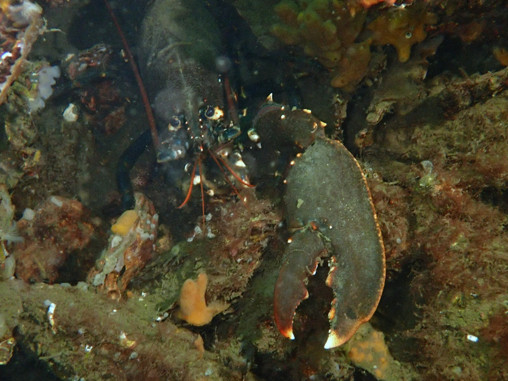 Koud maar zeer helder water! Paar dikke zeer trage zeenaalden, zeedonderpad (nog zonder nageslacht) en grote kreeften stilletjes in hun hol. Bekijk logdetails