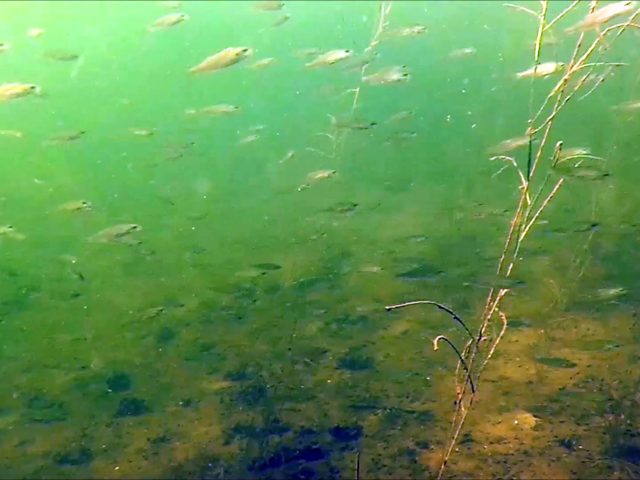 Nederland, Noord Brabant 25-06-23Duikje omgeven door grote scholen baarsjes, voorntjes, enz. Ook nog een karper en een snoek gezien