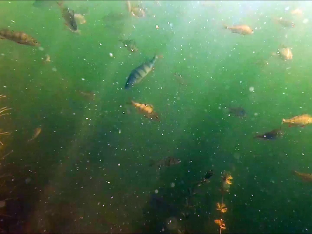 Duikje omgeven door grote scholen baarsjes, voorntjes, enz. Ook nog een karper en een snoek gezien