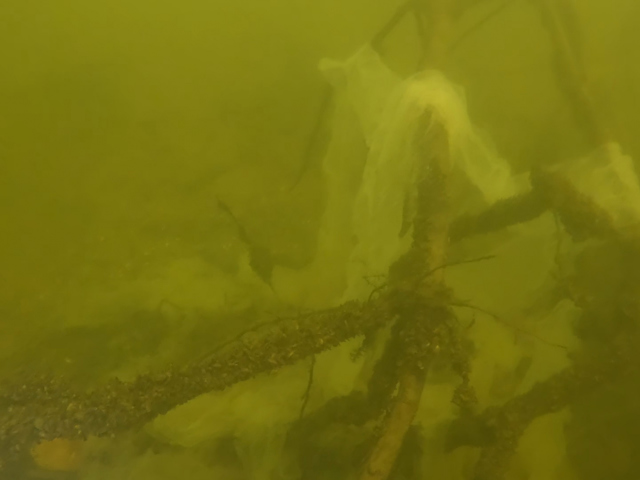 Nederland, Gelderland 11-04-25Enkele snoekbaarzen mogen spotten en een wolhandkrab. Veel baarzeneieren.