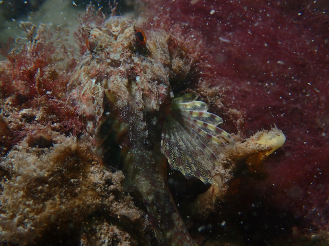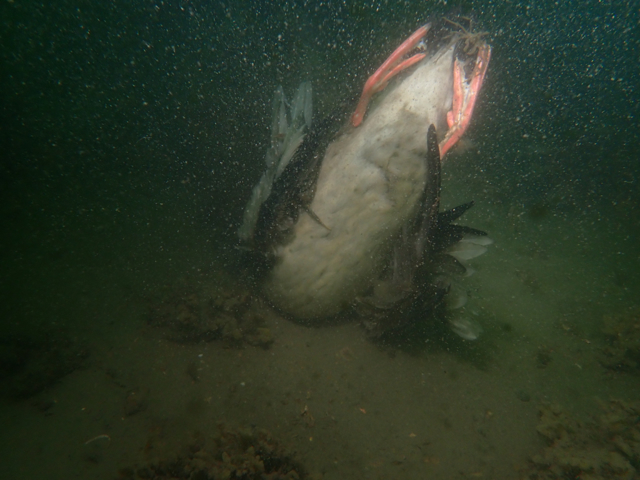 Hw duik. Mooie stek met veel anjelieren, anemonen en donderpadden. Ook een verstrikte vogel op 10 mtr. Vislijn