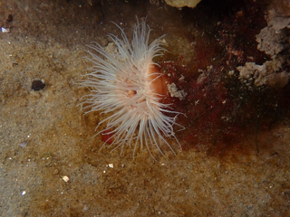 - Garnaal, strandkrab, platvis, knotszakpijp, oester, bruine plooislak, vlokslak, zeedahlia