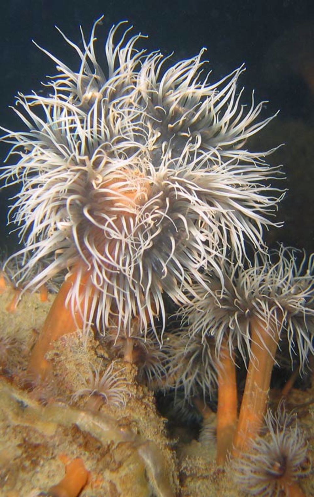 - Zeeanjelier, bloemdier, dodemansduim, geweispons, pauwenstaart-viltkokerworm, tubularia (poliep), krab