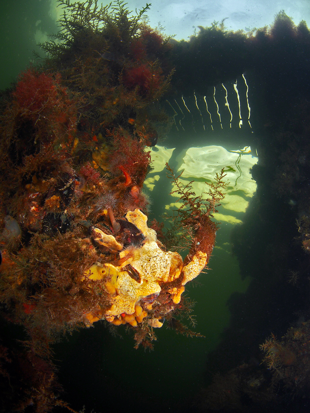 Wolphaartsdijk is verreweg de mooiste duikstek van het Veerse Meer. Je kunt hier zowel links- als rechtsom duiken. De dichtbegroeide bodem vormt een kleurrijke en gevarieerde habitat voor grondels, zeenaalden, zeedonderpadden, krabben, kreeften en platvissen. Wolphaartsdijk is een lust voor het oog en het heldere ondiepe water zorgt dat je het ook allemaal goed kunt waarnemen. Vanaf de steiger kun je ondiep tussen de wieren speuren naar klein leven zoals, kruiskwalletjes en de zeepbelslak. Ook het anker, de palen en het touw bij de rode boei zijn de moeite waard. Ze zijn schitterend begroeid en zeer geschikt voor onderwaterfotografie. Neem dus je camera mee! Dit is je kans om met goed licht de mooiste foto's te maken.