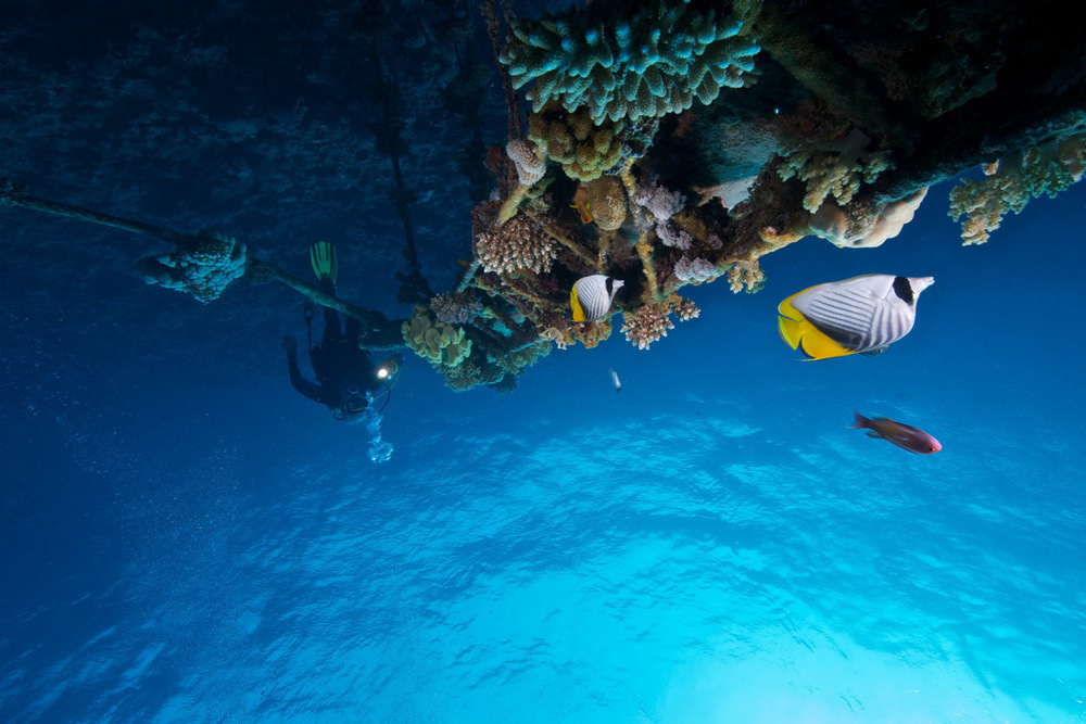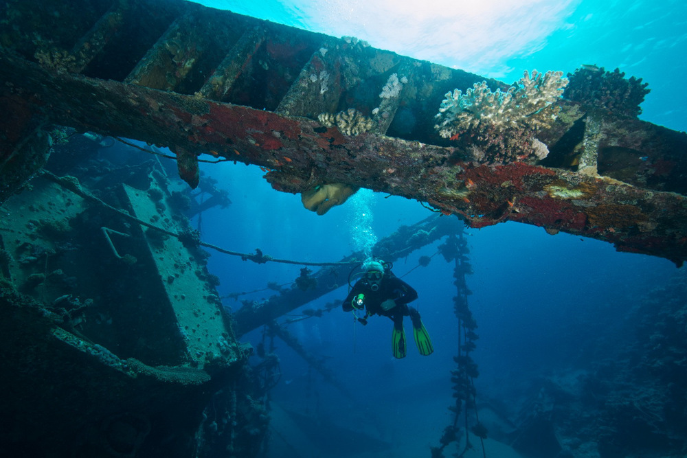 Het Hamada wrak is in twee opzichten bijzonder. Je kunt vanaf de kust op het wrak duiken en het ligt op een diepte van slechts vijftien meter! Na een paar minuten zwemmen zie je de achtersteven van deze 65 meter lange kustvaarder al opdoemen. Het wrak zonk in 1993 onder mysterieuze omstandigheden en ligt nu in twee delen op haar stuurboordzijde. Er valt genoeg op en om het wrak te fotograferen en te onderzoeken.